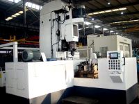 主減速器殼三軸鏜孔車(chē)端面機(jī)床,本機(jī)床是為粗加工、半精加工主減速器殼三孔及車(chē)削主減速器殼主錐端面而設(shè)計(jì)的專(zhuān)用機(jī)床。本機(jī)床采用立臥復(fù)合式三面結(jié)構(gòu),左右端各布滑臺(tái)和鏜頭,用于兩端孔的加工。立頭采用西德標(biāo)準(zhǔn)的DSS系列雙向刀盤(pán)鏜車(chē)頭,用于主錐端面孔加工,鏜車(chē)頭主電機(jī)采用變頻調(diào)速,以滿(mǎn)足鏜大小孔時(shí)切削速度的變化。中間采用數(shù)控滑臺(tái),滑臺(tái)上安裝液壓夾具,以適應(yīng)不同品種的偏置距。